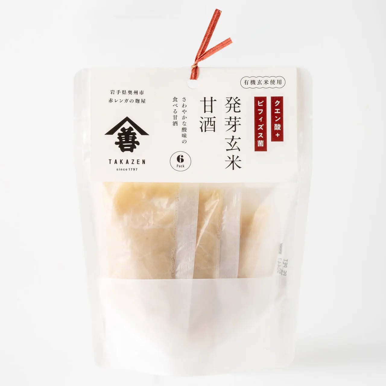 GABA(γ‐アミノ酪酸)が豊富な有機栽培の発芽玄米に焼酎醸造に用いる白麹菌で生成されるクエン酸と、母乳栄養児のおなかから抽出したヒト由来のビフィズス菌を配合した爽やかな酸味と甘み控えめの甘酒です。